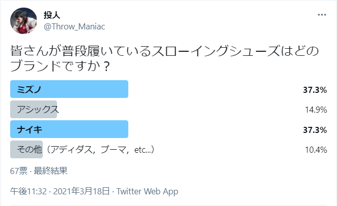 投票数が少なく統計学的には全く正確なデータではないが、参考までに私がTwitterで行ったアンケート結果を載せておく。